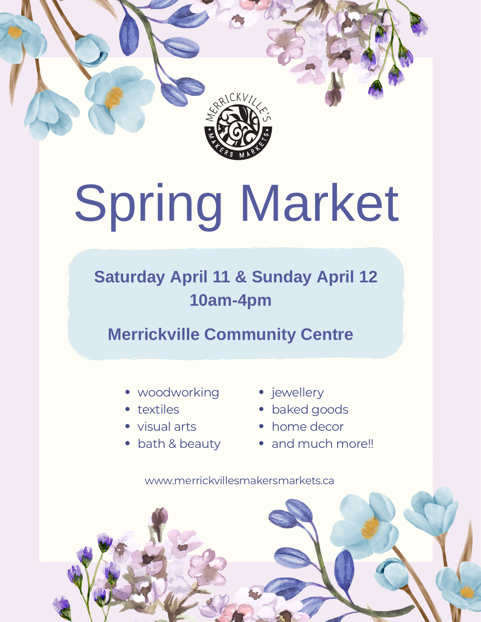 Join us INDOORS at the Merrickville Community Centre from 10am to 4pm each day.